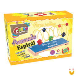 Descritivo detalhado: Brinquedo confeccionado em madeira, M.D.F. e arame. Composto por 03 circuitos e 11 peças de formas variadas e coloridas. Arame resistente e pintado com tinta atóxica. Base e peças pintadas com tinta atóxica colorida. Medida do produto: 35 x 10 x 25 cm.