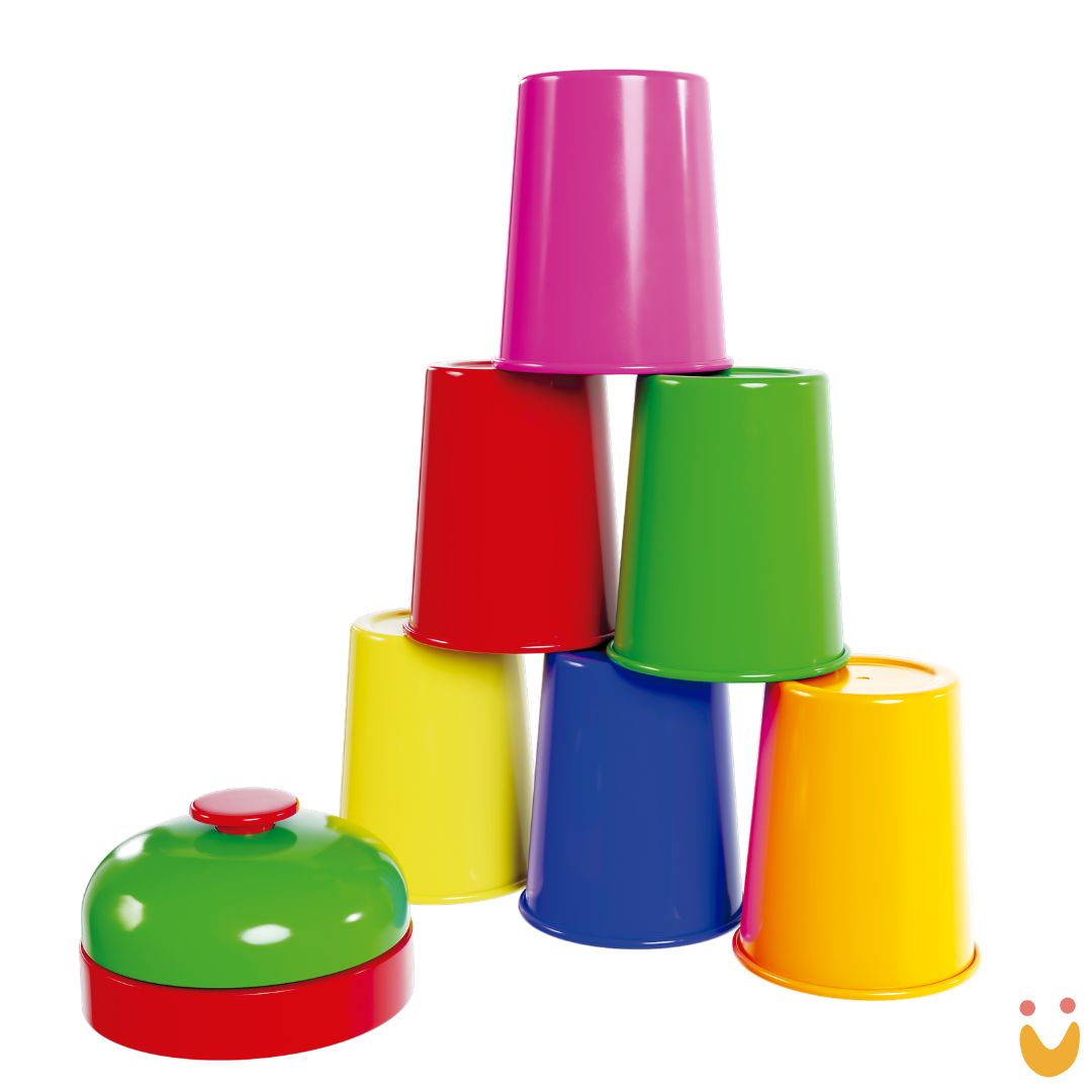 Este Brinquedo Educativo é um jogo dinâmico de agilidade e atenção que desafia os jogadores a reproduzirem sequências de cores com rapidez e precisão. No Batalha dos Copos, cada participante deve organizar seus copos conforme a sequência apresentada nas cartas e, ao finalizar primeiro, tocar a campainha para garantir a vitória.