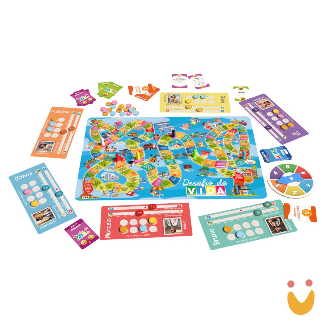 Para pais e terapeutas, o Desafio da Vida é um excelente recurso para trabalhar habilidades cognitivas e socioemocionais, promovendo diálogo, reflexão e interação em grupo. Composto por tabuleiro, pinos, personagens, roleta, cartas, fichas e demais acessórios, é ideal para momentos em família ou atividades educativas, proporcionando aprendizado de forma lúdica e significativa.