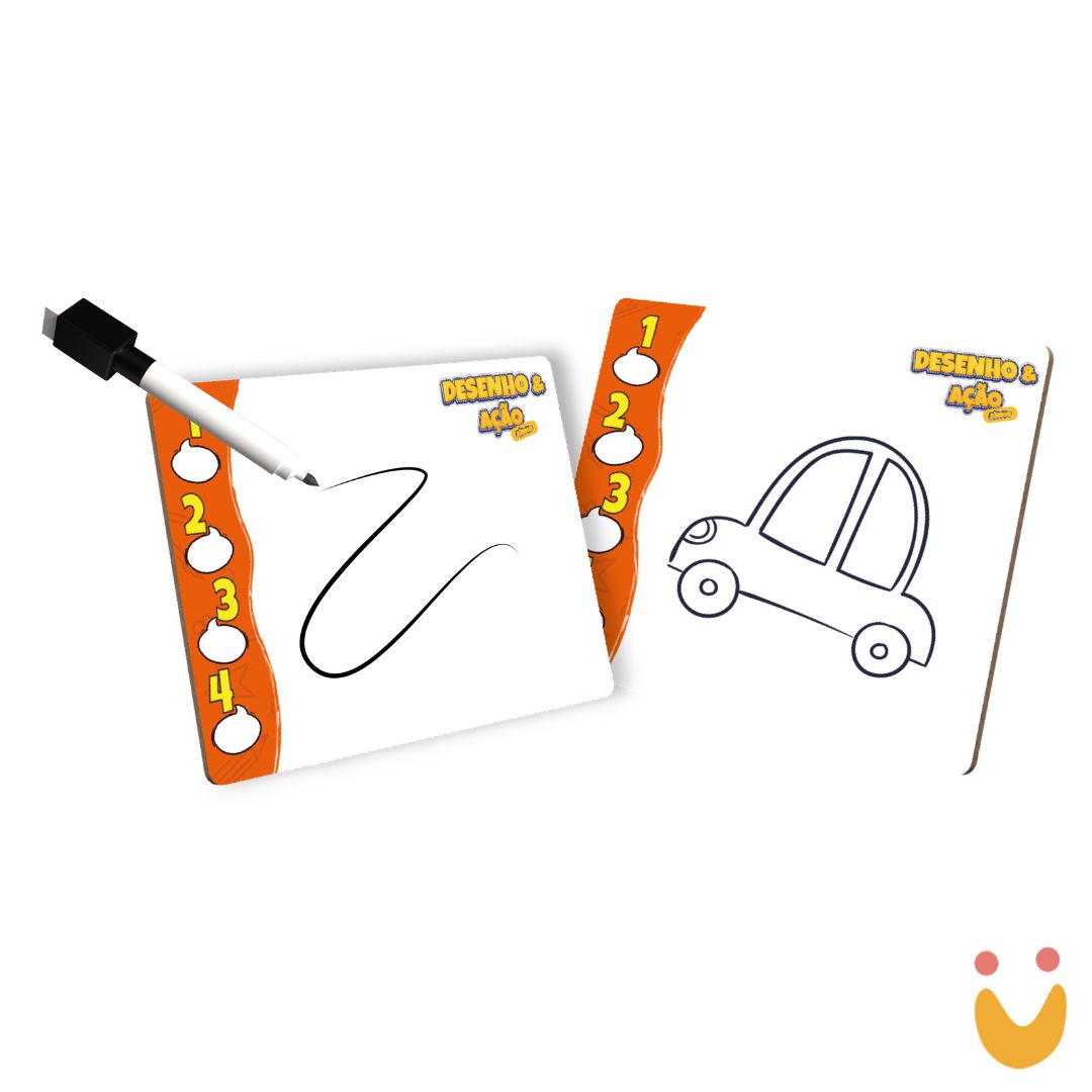 Este Brinquedo Educativo é um jogo dinâmico e criativo que estimula a expressão, a comunicação e o raciocínio rápido por meio de desafios de desenho. No Desenho & Ação, os jogadores utilizam as lousas e a caneta para representar palavras ou situações das cartas, enquanto os demais tentam adivinhar, tornando a experiência divertida e interativa.