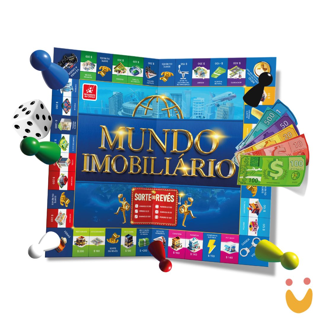 Este Brinquedo Educativo é um jogo estratégico que simula o universo de compras, vendas e construções, proporcionando uma experiência lúdica de aprendizado sobre dinheiro e tomada de decisões. No Mundo Imobiliário, os jogadores percorrem o tabuleiro, adquirem propriedades, realizam negociações e constroem, buscando expandir seus bens e alcançar melhores resultados ao longo da partida.