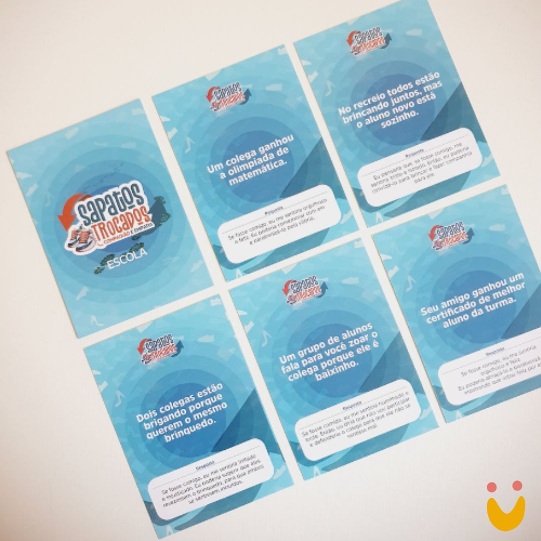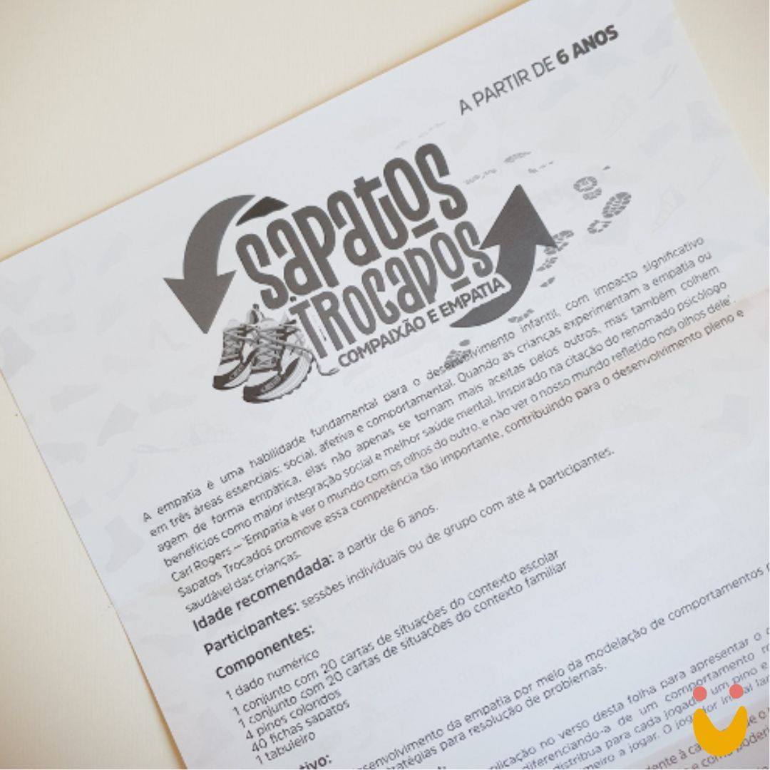 Este Brinquedo Terapêutico é um jogo que convida crianças e adolescentes a desenvolverem a empatia de forma lúdica e significativa. Ao vivenciar situações do ponto de vista de outra pessoa, o participante é estimulado a compreender diferentes sentimentos, pensamentos e necessidades, ampliando sua capacidade de se conectar e interagir de maneira saudável. A dinâmica favorece o desenvolvimento social, ao melhorar as relações interpessoais; o crescimento afetivo, ao fortalecer vínculos e a sensibilidade emocional; e a regulação comportamental, ao estimular respostas mais respeitosas e colaborativas diante de conflitos. Ao “calçar os sapatos do outro”, a criança descobre novas formas de agir com compreensão e solidariedade, aprendendo que, quando caminhamos juntos, a jornada se torna mais leve e enriquecedora.