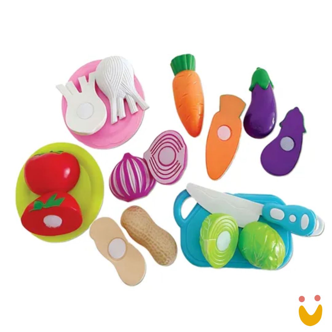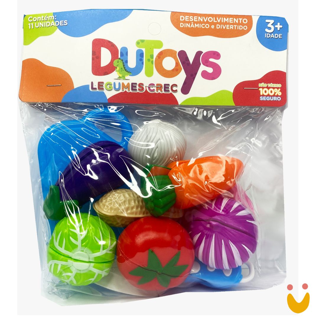 Durante a brincadeira, os pequenos estimulam a coordenação motora fina, o controle dos movimentos e a força dos dedos e mãos, ao manusear os alimentos e praticar o corte. A atividade também favorece a percepção visual, o reconhecimento de formas, cores e categorias alimentares, além de estimular o vocabulário e a linguagem ao nomear os itens e inventar histórias.