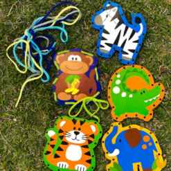 Meus primeiros alinhavos transporte vão ajudar a desenvolver o raciocínio lógico de uma forma bem mais divertida. São 5 placas para serem bordadas com cordões coloridos. A criança segura um cordão na mão e vai passando pelos buraquinhos dos desenhos, até contorná-los por inteiro.