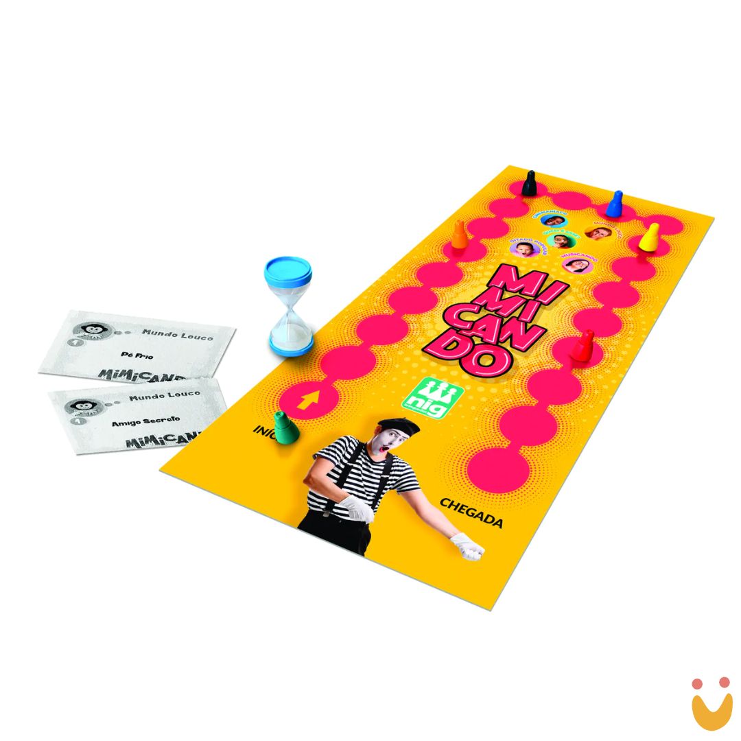 Este Brinquedo Educativo é um jogo divertido e interativo que estimula a expressão corporal e a comunicação por meio da mímica. No Mimicando, os jogadores devem representar palavras ou temas presentes nas cartas — como filmes, músicas, personagens e ditados populares — enquanto os demais tentam adivinhar dentro do tempo determinado pela ampulheta.