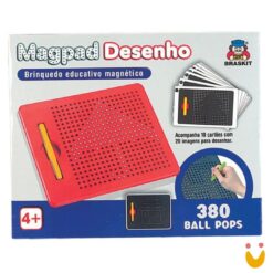 Este Brinquedo Educativo é uma lousa interativa que oferece às crianças a oportunidade de explorar sua criatividade de forma lúdica e sensorial. Utilizando uma caneta magnética, a criança pode desenhar livremente sobre a superfície da lousa, fazendo com que as bolinhas metálicas se elevem para formar imagens, padrões visuais, letra, números e muito mais. Com um simples toque da caneta, novos traços podem ser criados, proporcionando uma experiência prática e envolvente, onde o desenho pode ser alterado ou apagado sempre que desejado.