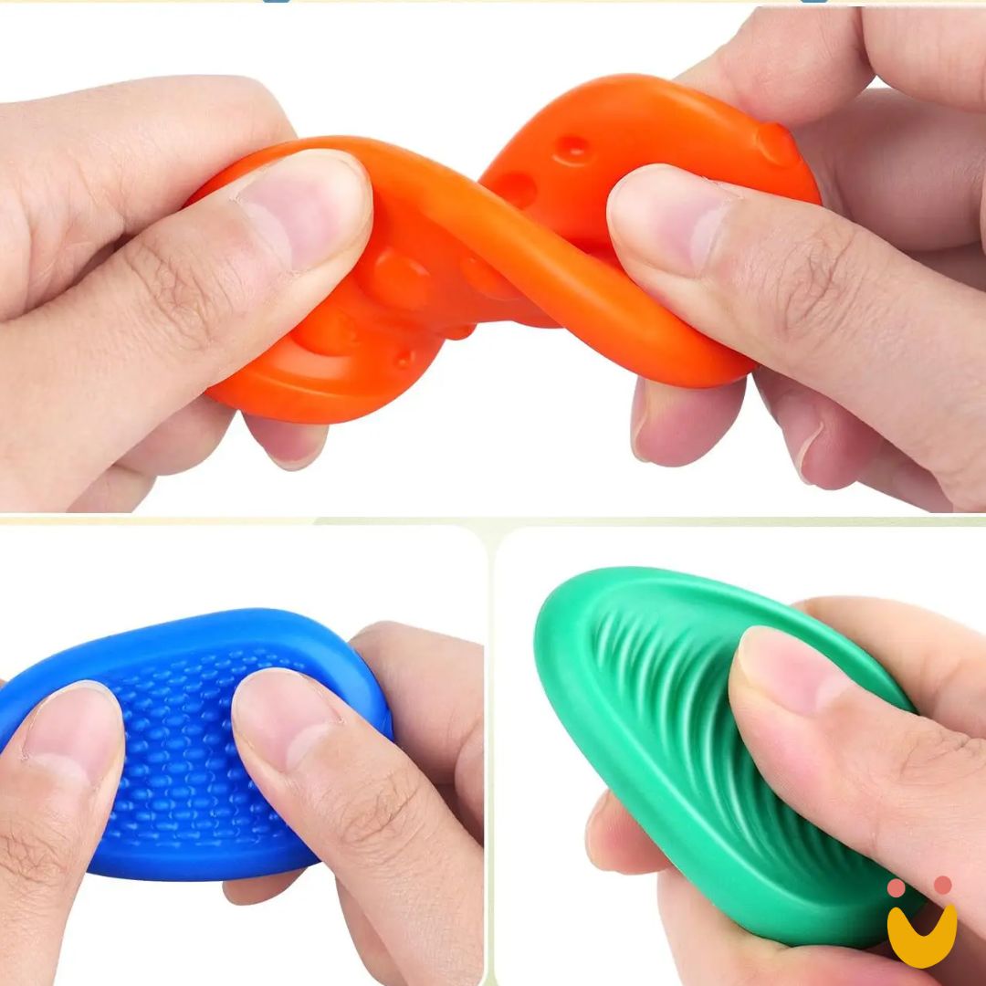 Este Brinquedo Educativo é um recurso sensorial pensado para auxiliar na autorregulação emocional, no alívio do estresse e na promoção do bem-estar. O kit contém 6 pedrinhas em cores suaves e texturas variadas, desenvolvidas para estimular o toque e oferecer conforto nas mãos.