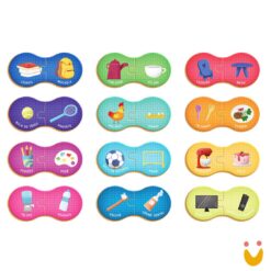 Cada peça de madeira representa uma metade de um par correspondente, com imagens vibrantes e cativantes. As crianças são desafiadas a encontrar os pares correspondentes, exercitando suas habilidades de observação e memória enquanto procuram por combinações.