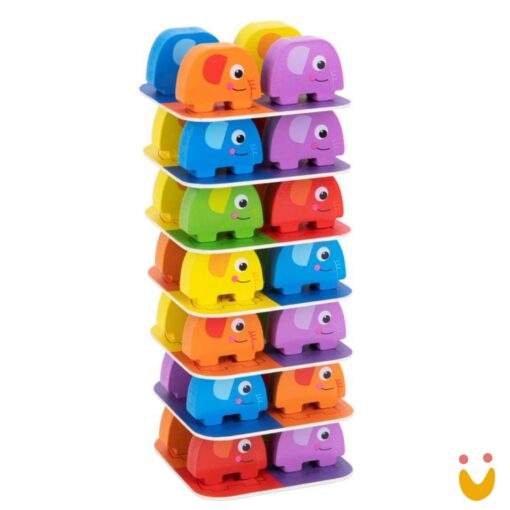O jogo segue um estilo semelhante ao Jenga, onde os elefantes são empilhados em uma torre. As crianças retiram um elefante de cada vez da pilha, com base na cor que aparece no dado. Uma parte fundamental deste jogo é o uso das cores. As crianças podem praticar o pareamento de cores, associando os elefantes às cores indicadas no dado. Isso ajuda no desenvolvimento da percepção visual e na compreensão das correspondências de cores.