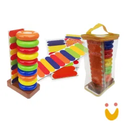 Este Brinquedo Educativo apresenta desafios que estimulam o pensamento estratégico e o desenvolvimento das funções executivas. A Torre de Londres convida a criança a reorganizar as esferas nas hastes para reproduzir diferentes combinações, exigindo planejamento prévio e análise de cada movimento antes de executá-lo.