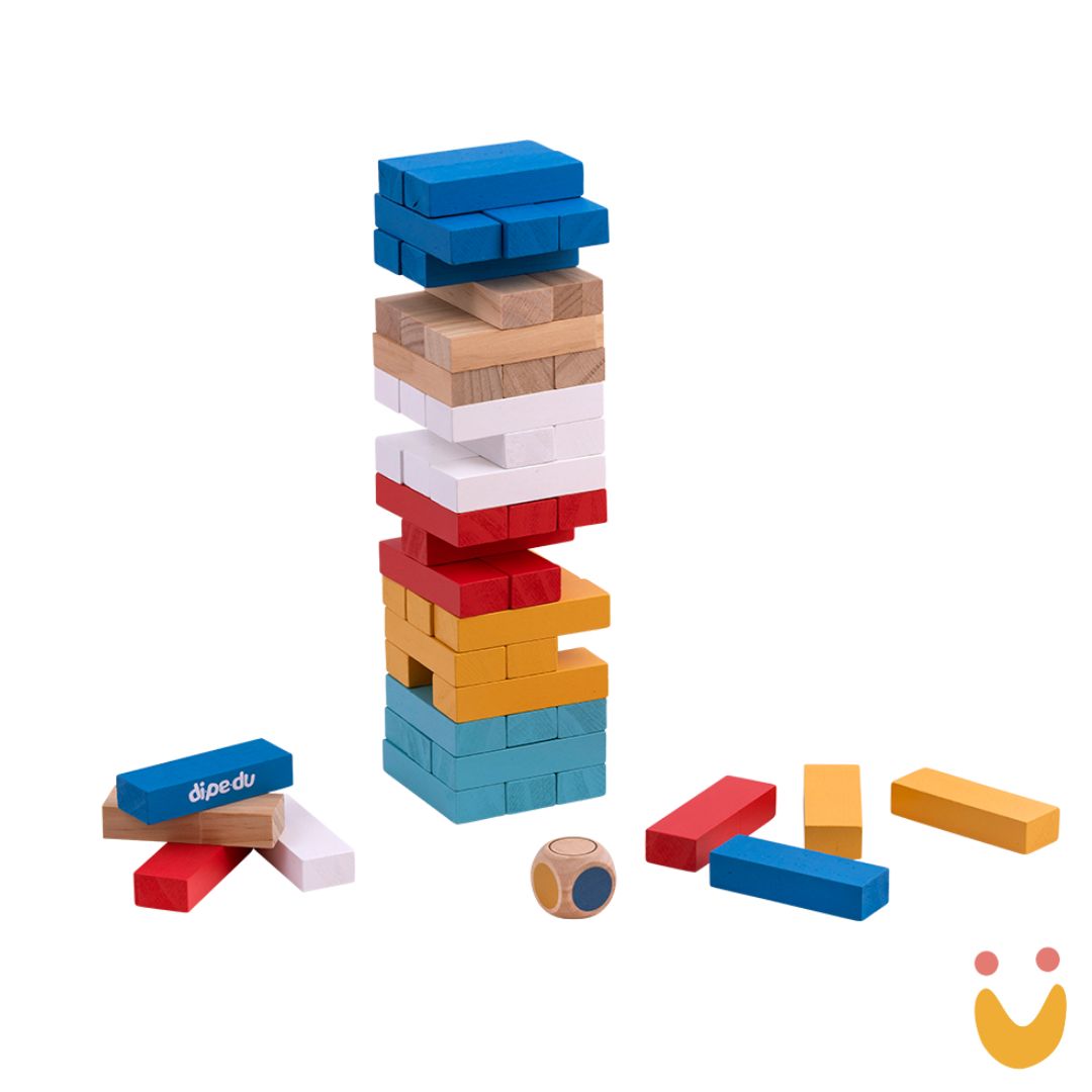 A dinâmica do jogo é simples: uma torre composta por 54 blocos de madeira MDF aguarda os jogadores. Eles se revezam retirando blocos de qualquer andar, exceto o último, e os colocando no topo da torre. O desafio reside em manter a estrutura estável, pois o jogador que causar o colapso da torre é o perdedor. Além de proporcionar diversão, este jogo contribui para o desenvolvimento da coordenação motora, do pensamento estratégico e do controle de impulsos.