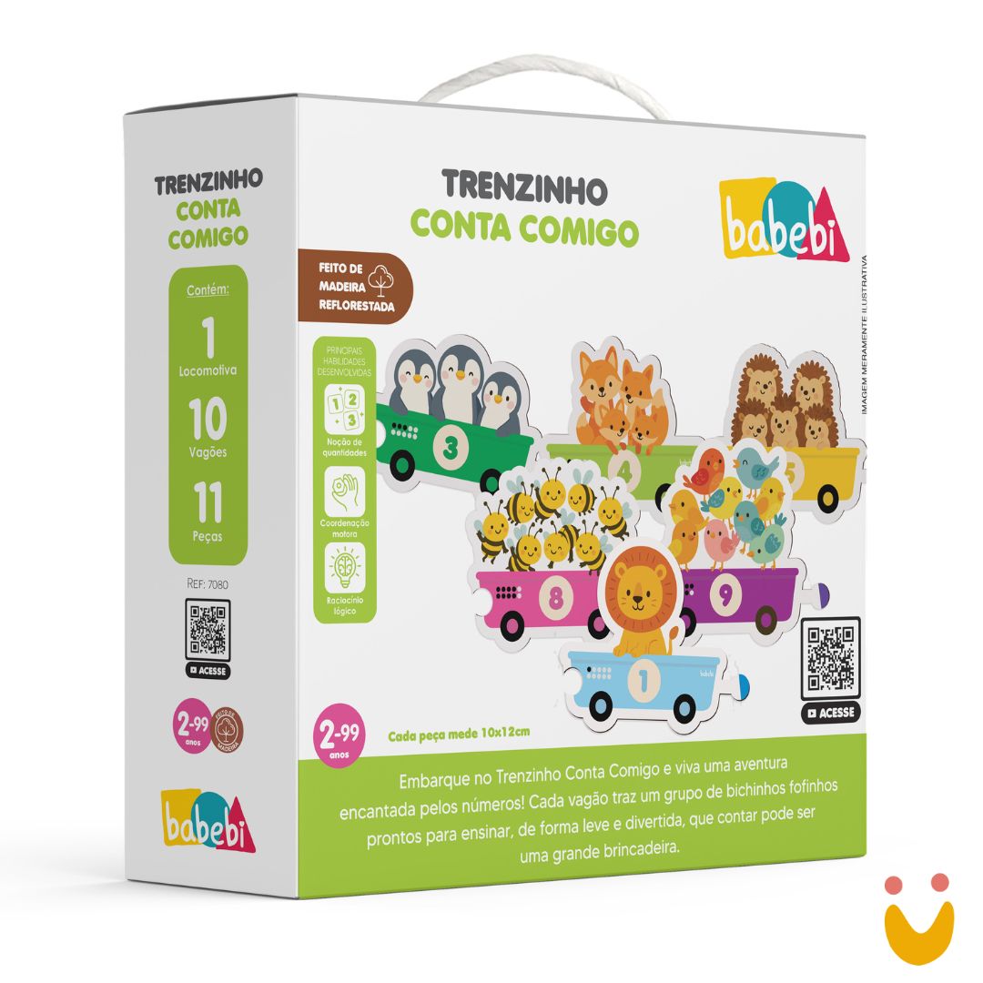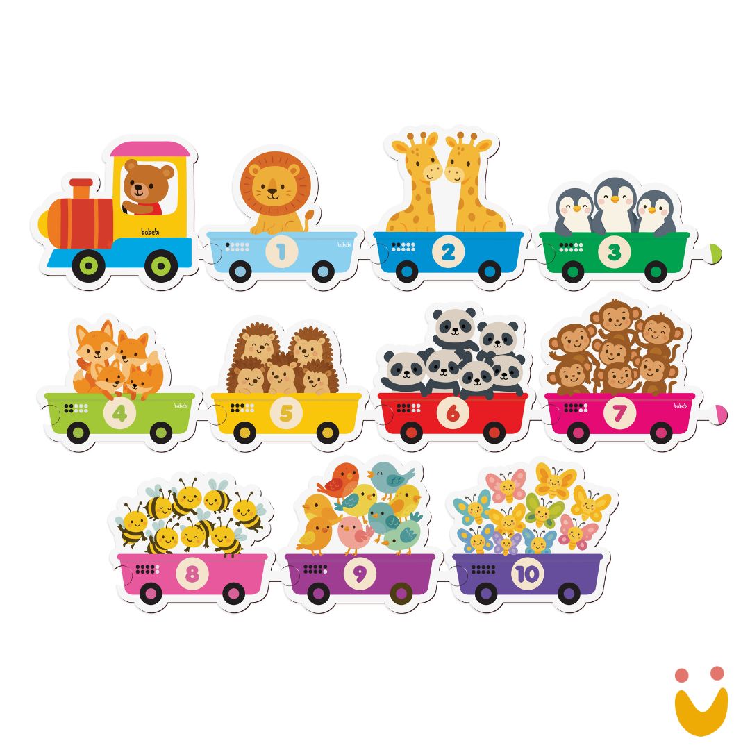 O conjunto é composto por 1 locomotiva e 10 vagões, formando um trenzinho divertido que estimula a curiosidade e o interesse das crianças pelo universo dos números. Cada vagão representa uma etapa da contagem, ajudando a criança a construir noções iniciais de sequência numérica.